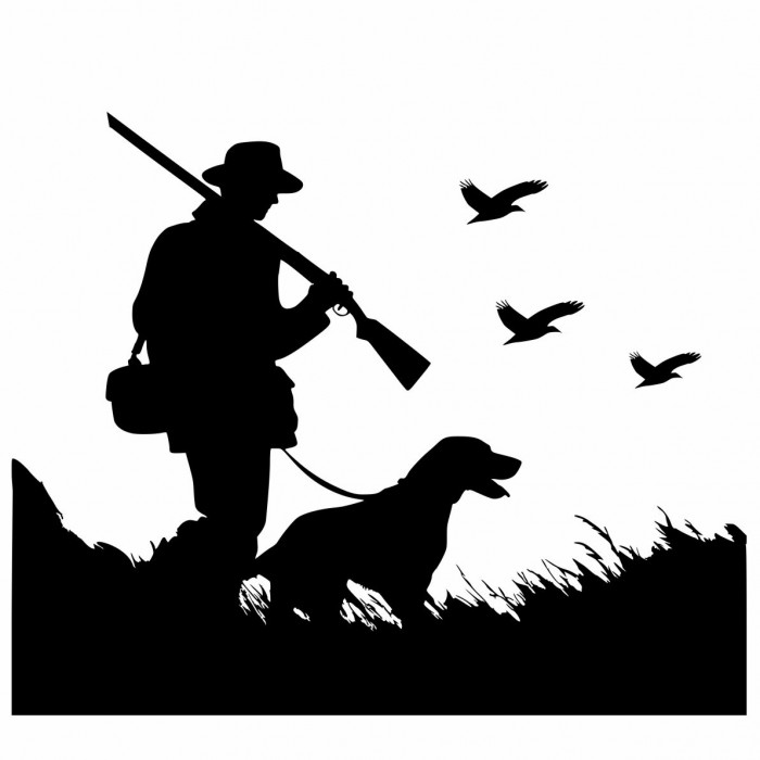 1 x Motivaufkleber Jäger mit Hund 28 x 23 cm