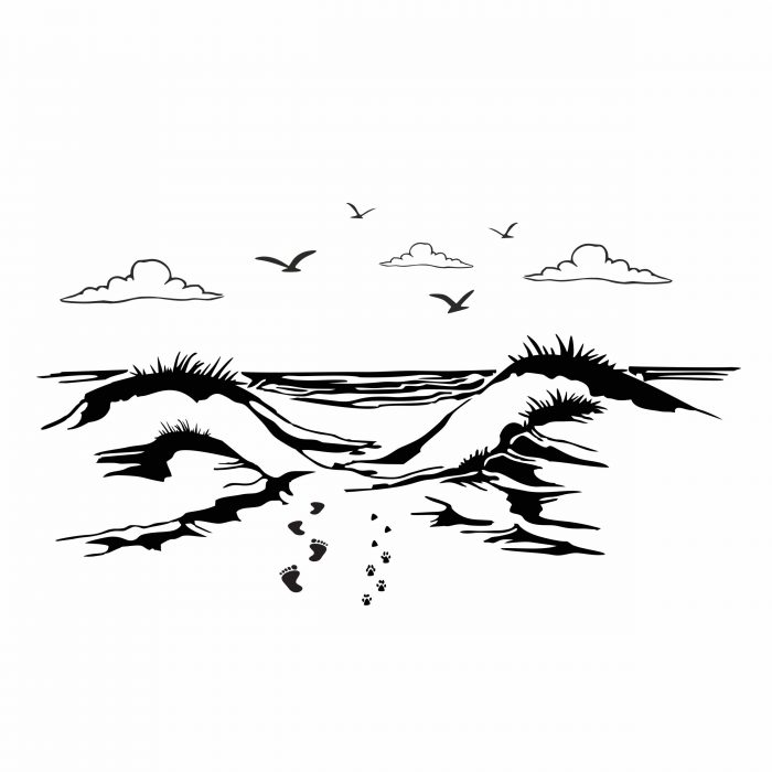 Barfuss am Strand mit Hund Aufkleber für dein Reisemobil, Wohnmobil oder Transporter, Exklusiv Dekor Design
