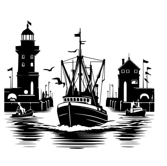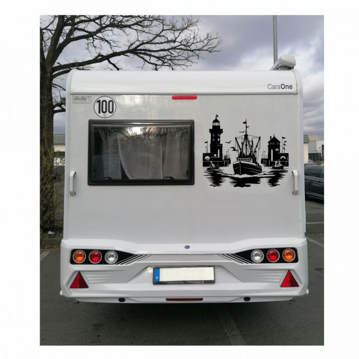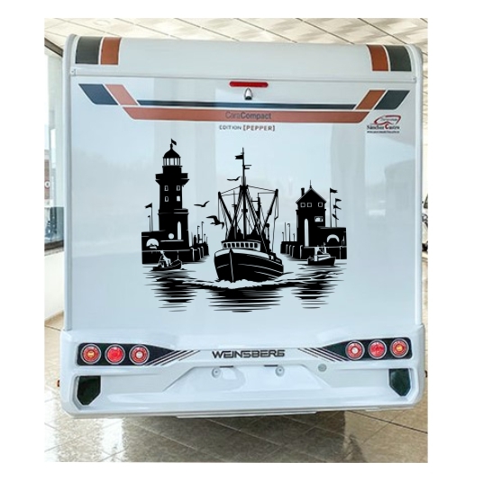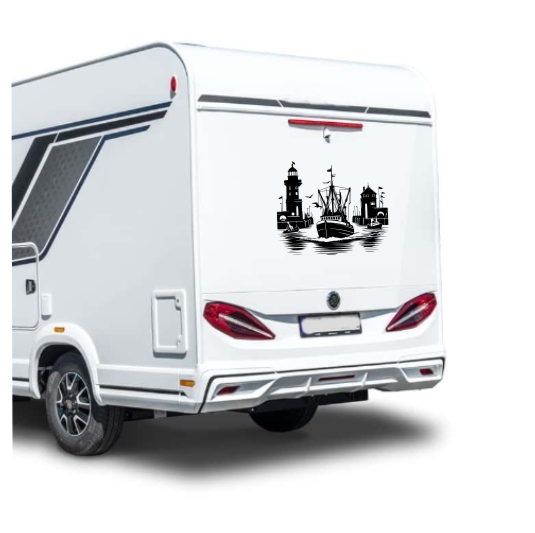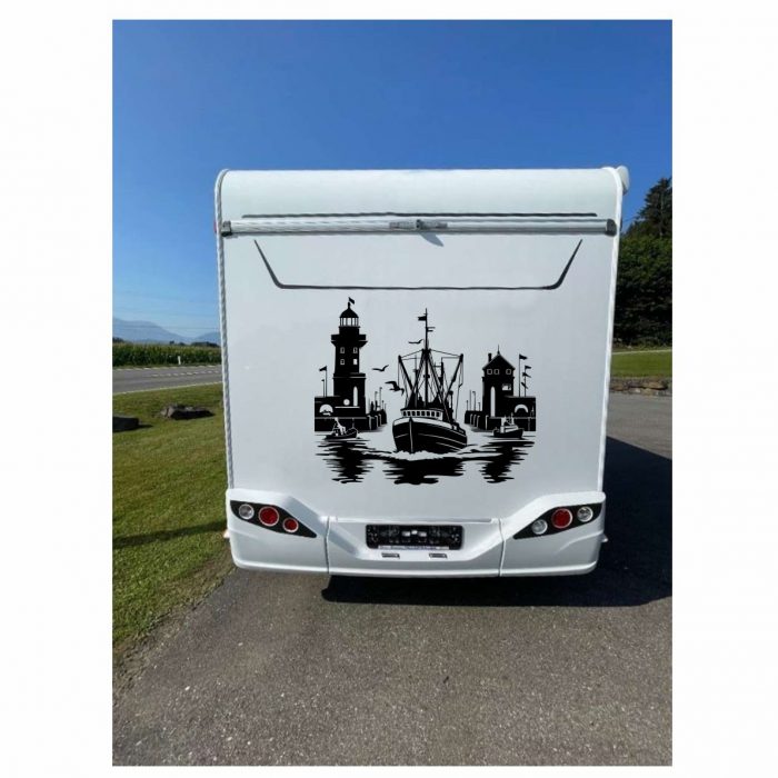 Aufkleber Kutter Hafen für dein Wohnmobil, Expulsiv nur bei uns erhältlich. Zeige deine Leidenschaft zur Küste.