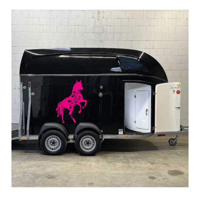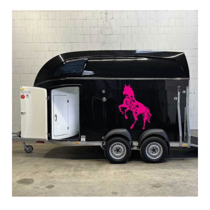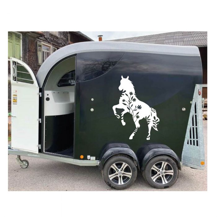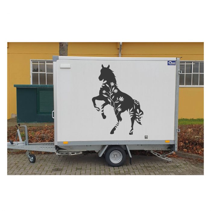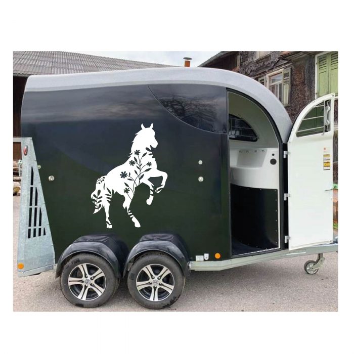 Blumenpferd Hanni Aufkleber – Der exklusive Aufkleber mit kreativen Blumen lässt Deinen Pferdeanhänger in einem neuen Glanz erstrahlen.