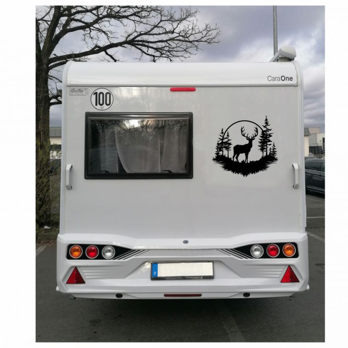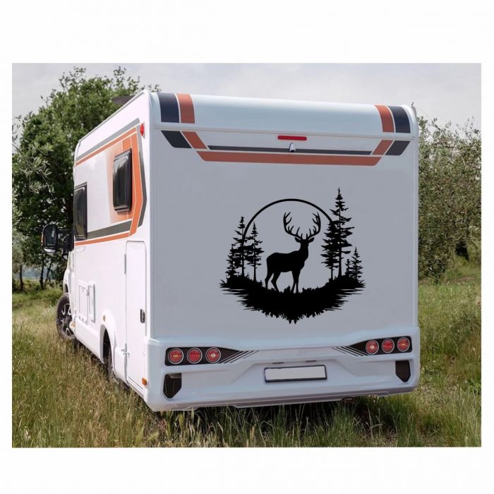 Wohnmobil Aufkleber Hirsch im Wald.