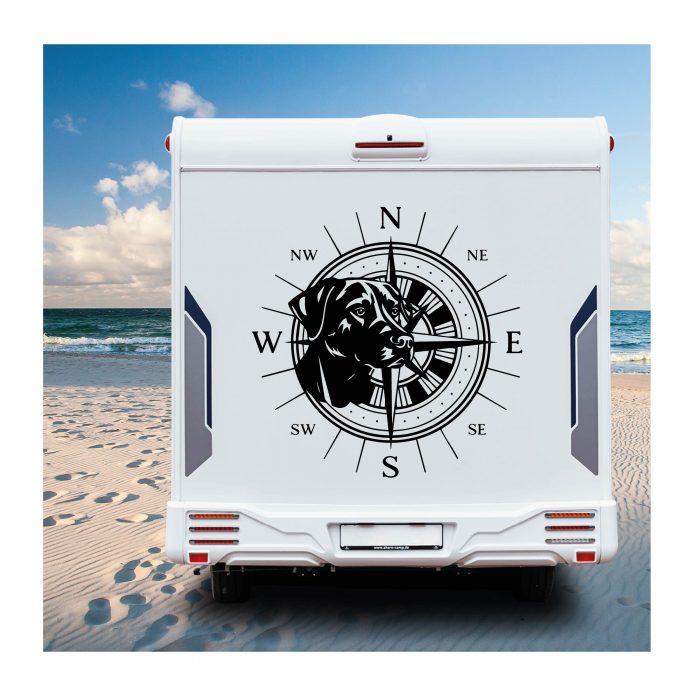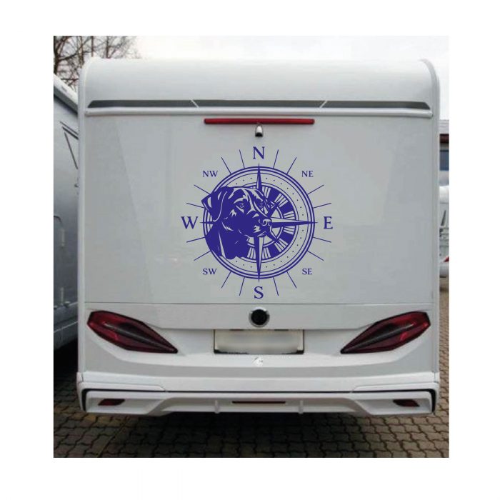Hund auf Reisen Aufkleber – Gehe auf Reisen und sorgen für einen Wow-Effekt mit diesem exklusiven Aufkleber. Eine verspielter Mix aus Tier und Kompass veredelt Dein Wohnmobil