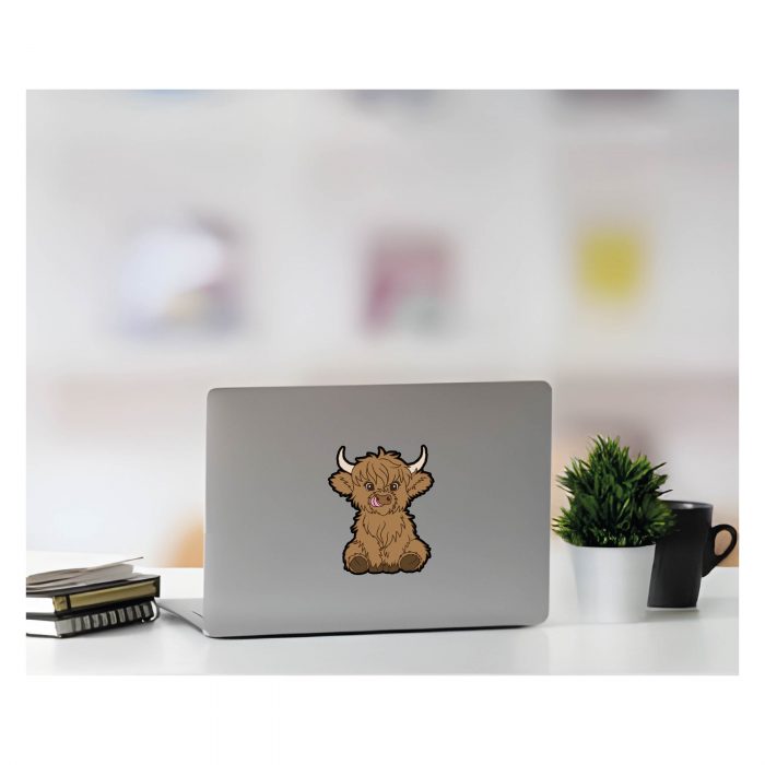 Highlandcow – Süße Kuh Aufkleber, mit dem du Deine persönlichen Gegenstände individualisieren kannst. Klebe den Sticker auf deinen Laptop, Drucker und viele weitere Dinge.