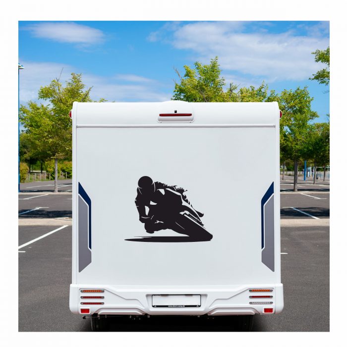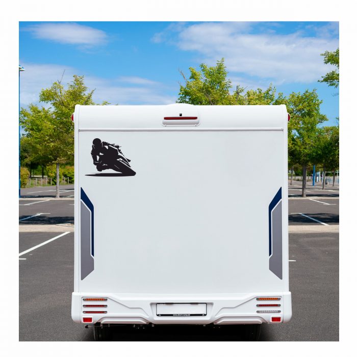 Motorrad Aufkleber GP Racer für dein Wohnmobil. In Farbe, Variante, und Größe nach Auswahl.