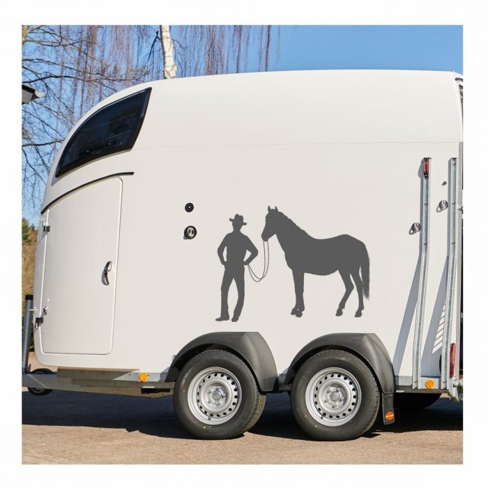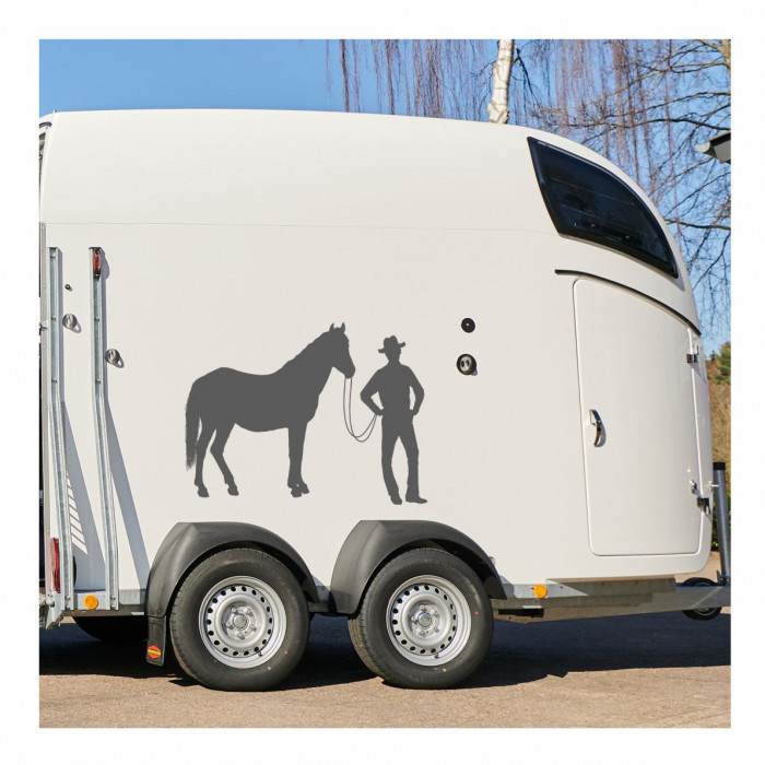 Cowboy Motiv Aufkleber für viele Pferdeanhänger passend.