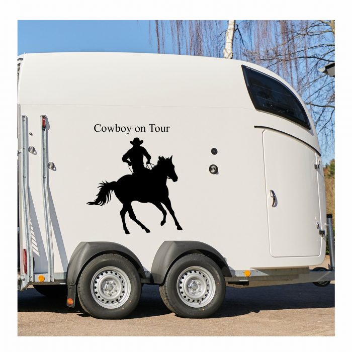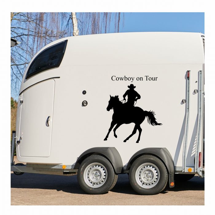 Cowboy on Tour Dekor Aufkleber für Pferdeanhänger.