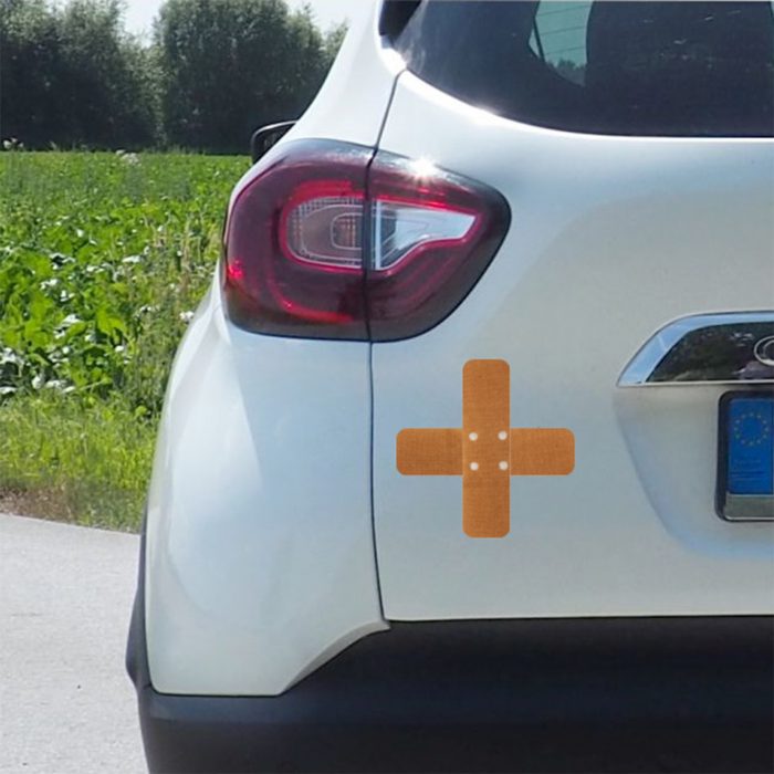 Pflaster Kreuz Aufkleber – Funsticker zum verdecken von Dellen und Kratzern auf Deinem Auto oder andern glatten Oberflächen.