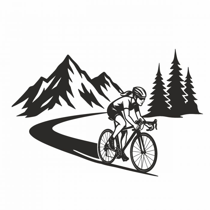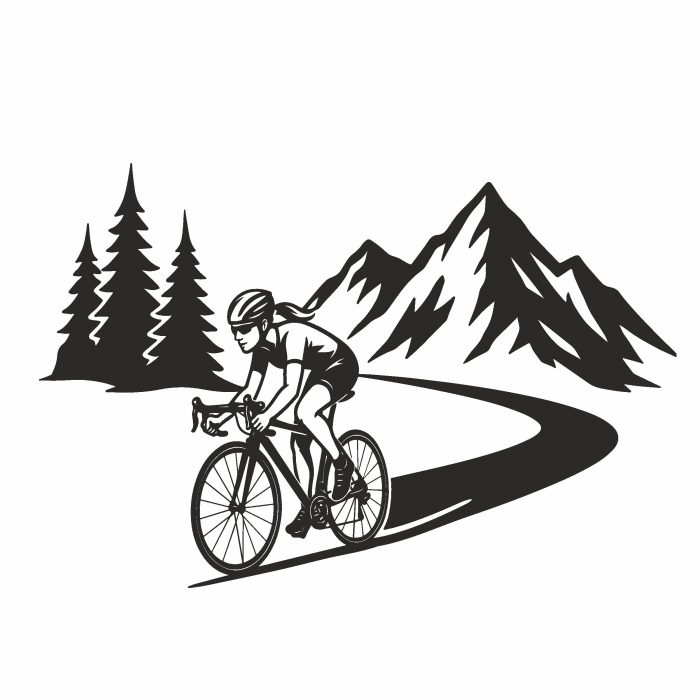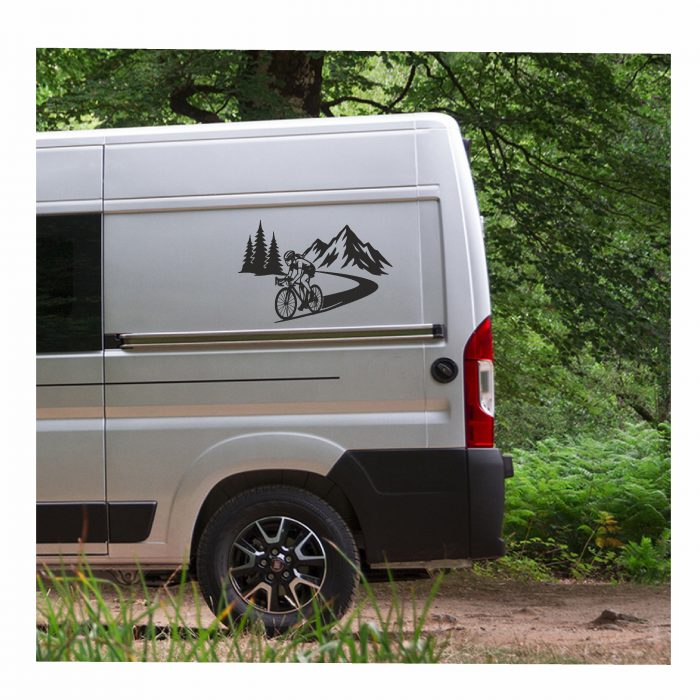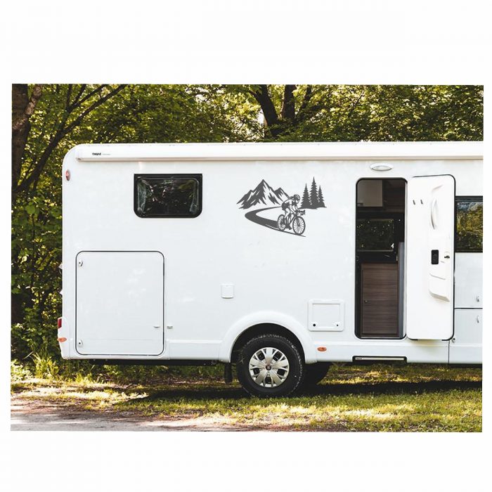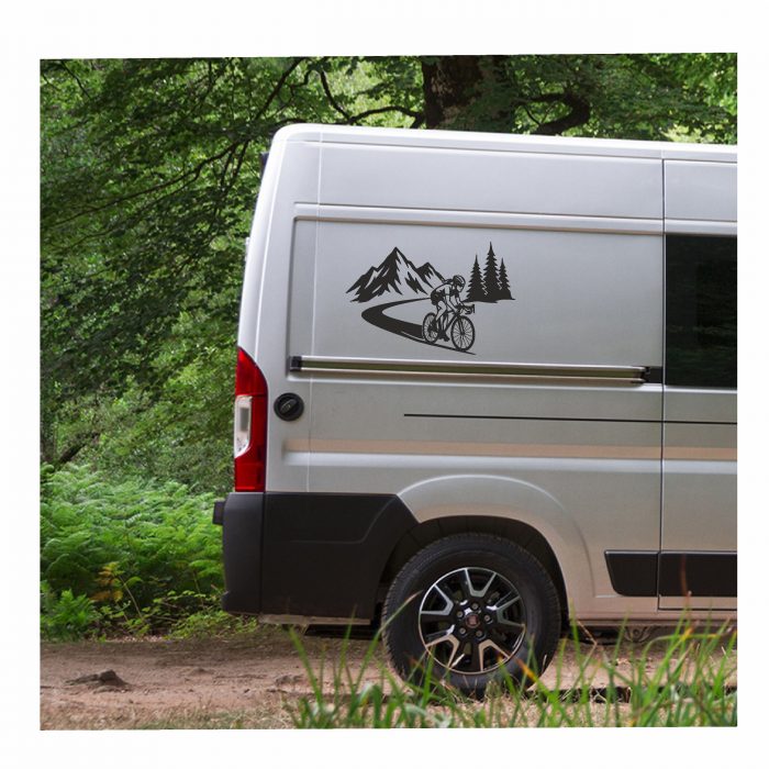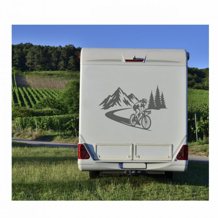 Aufkleber Rennradfahrerin in den Bergen für Wohn und Reisemobil.