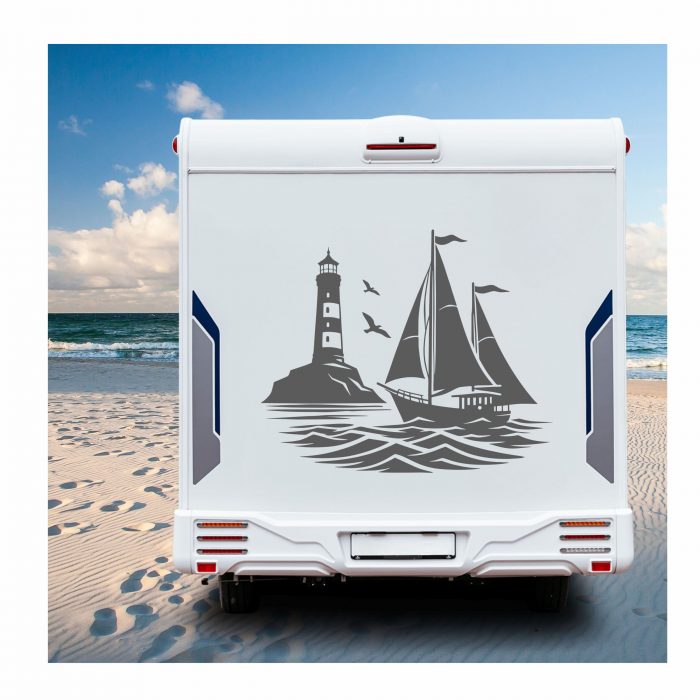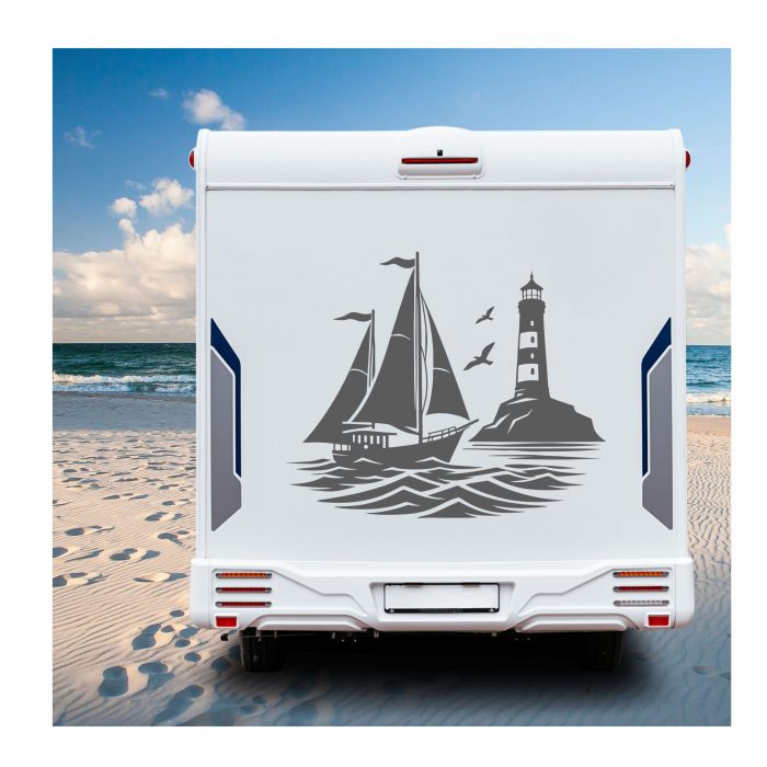 Segelboot mit Leuchtturm Aufkleber Motiv für Ihr Wohnmobil bis XXL.