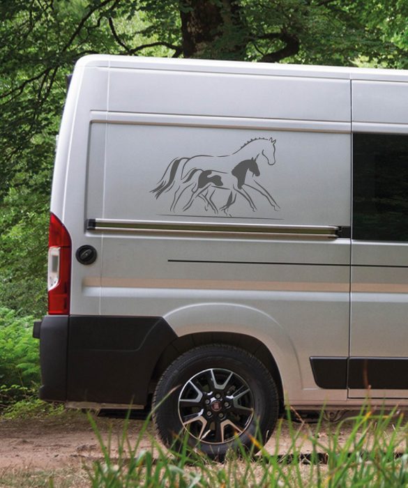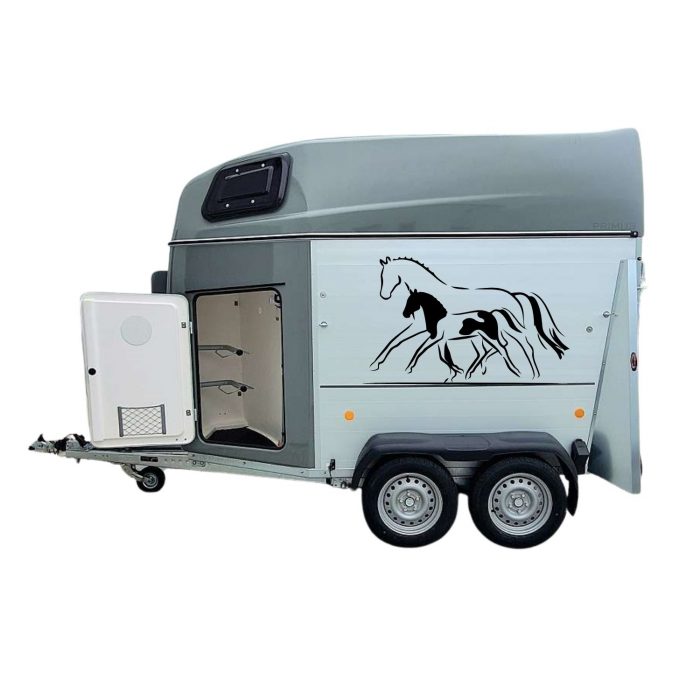 Stute mit Fohlen – Dein exklusiver Aufkleber in vier verschiedenen Größen, der deinen Anhänger in einem neuen Glanz erstrahlen lässt