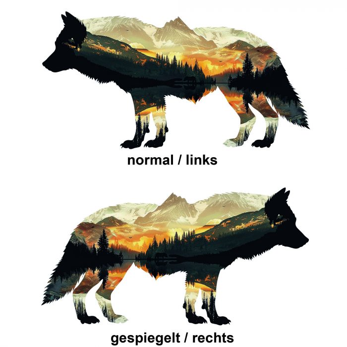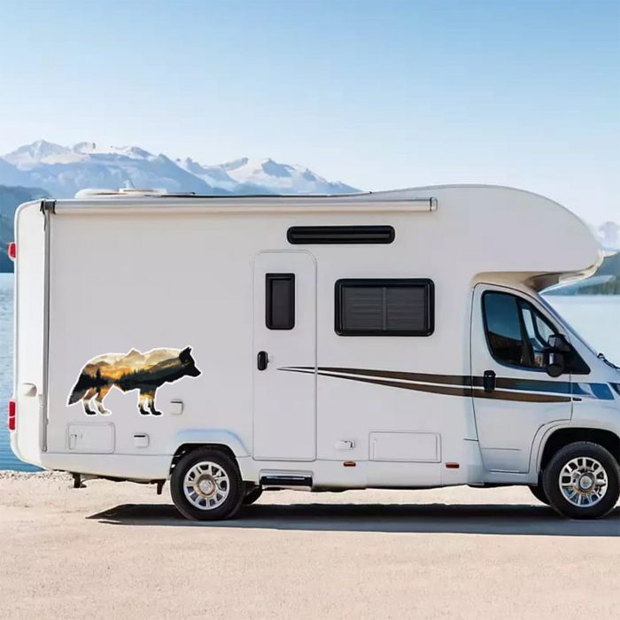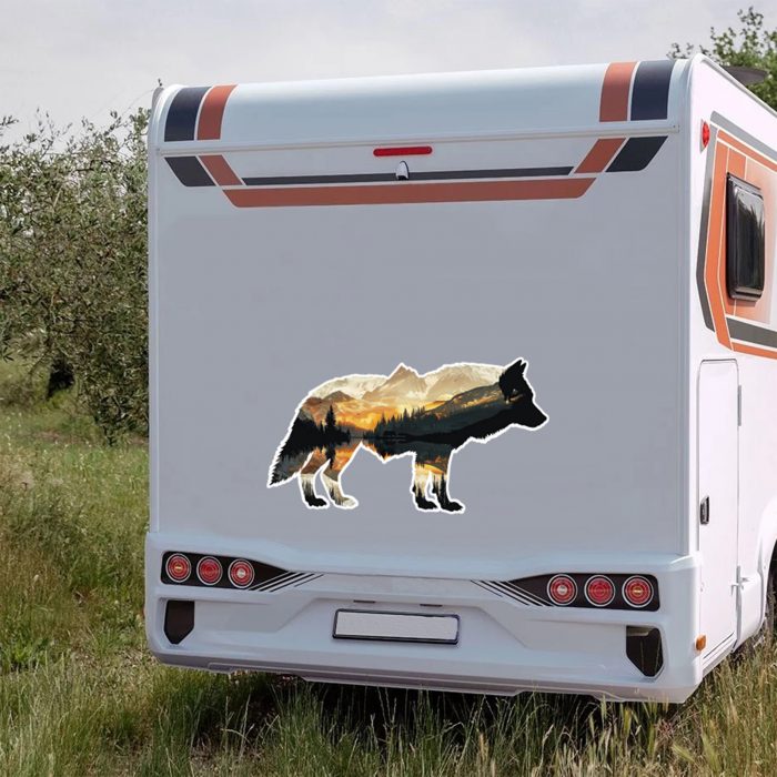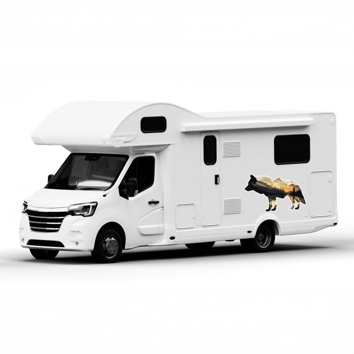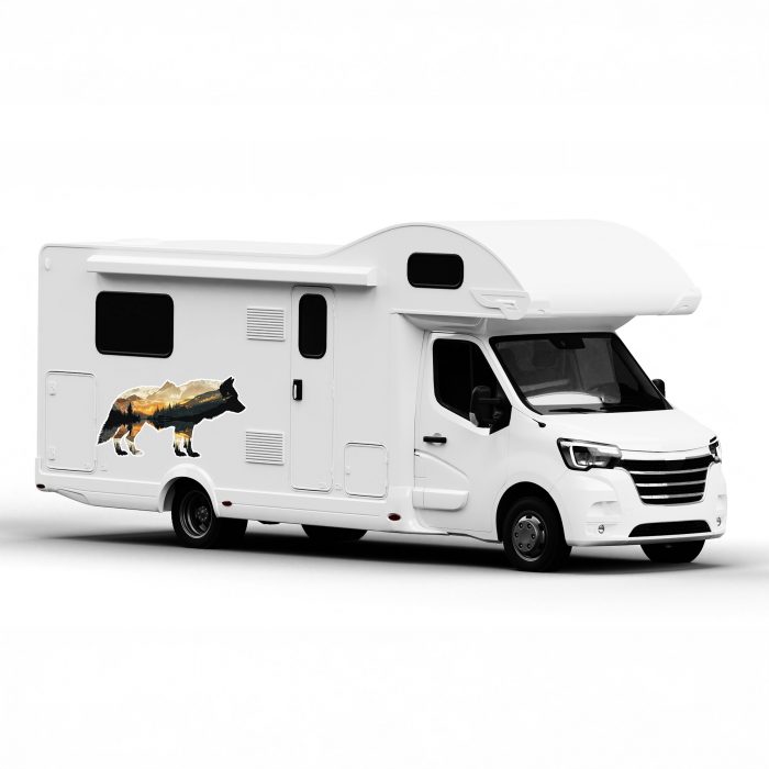 Wohnmobil Aufkleber Wolf Silhouette mit Natur innen, Optik aufwerten, groß und wetterfest