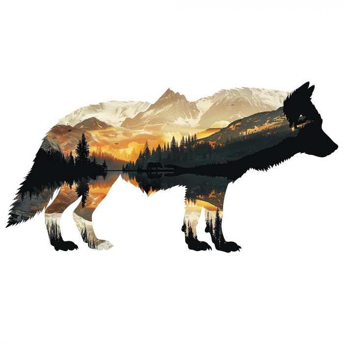 Wolf mit Landschaft – Wildnis, Instinkt, Freiheit