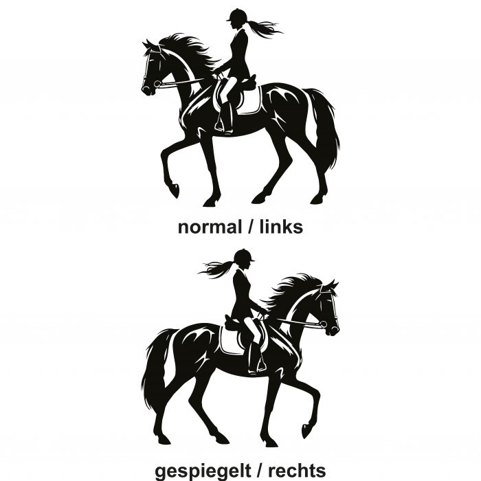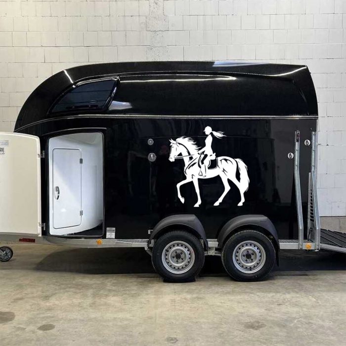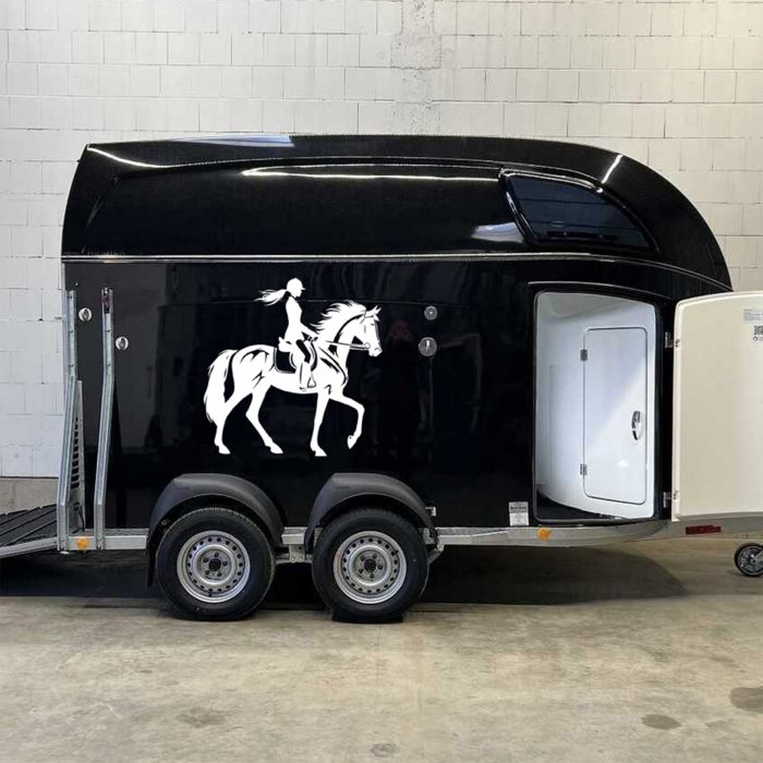 Pferdeanhänger Aufkleber Dressur Reiterin – Wähle Deine Farbe und Größe aus