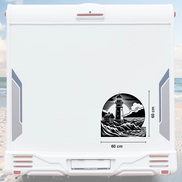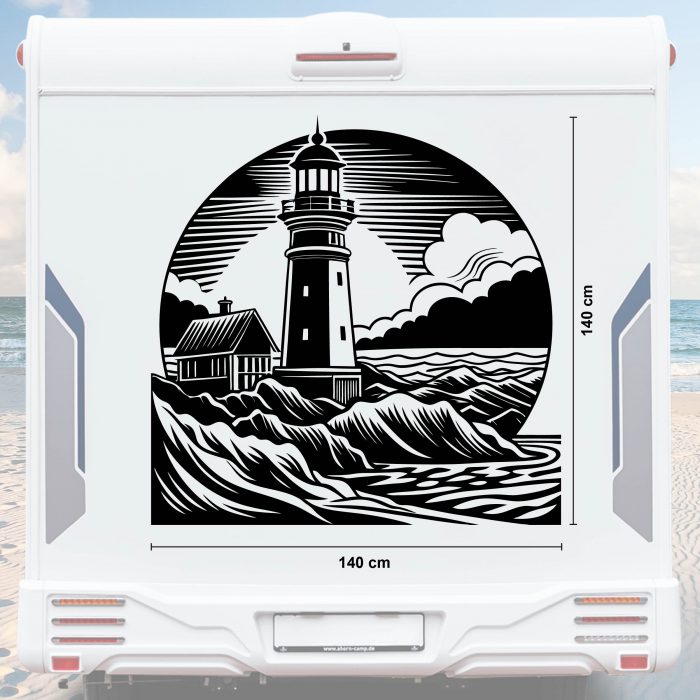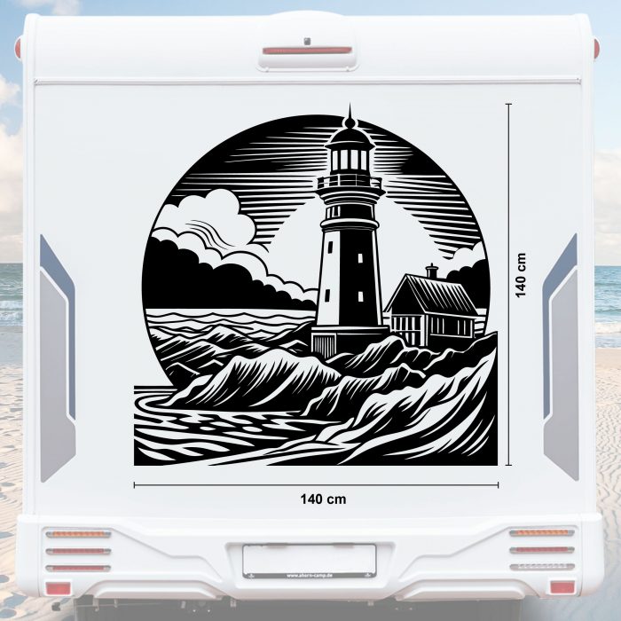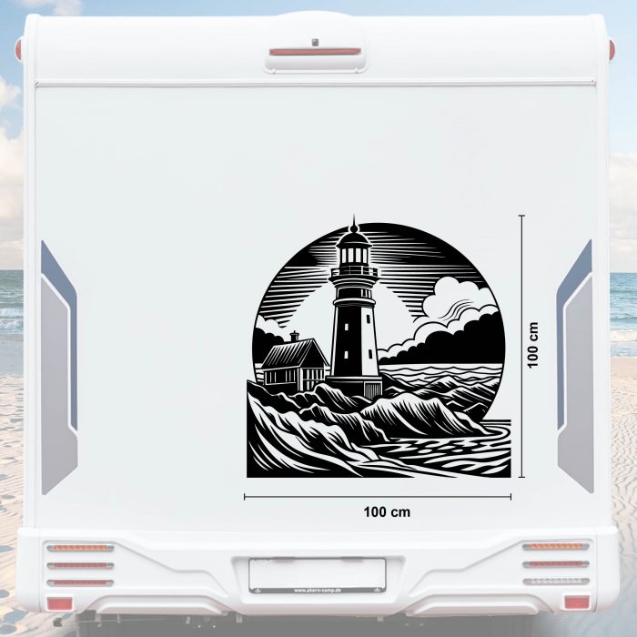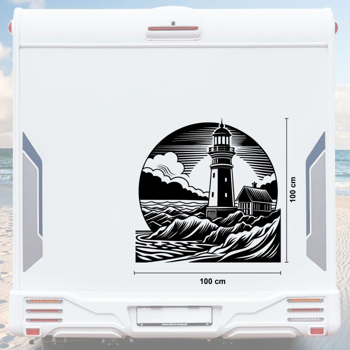 Leuchtturm Wohnwagen Aufkleber mit Wellen und Meer bis Größe XXL