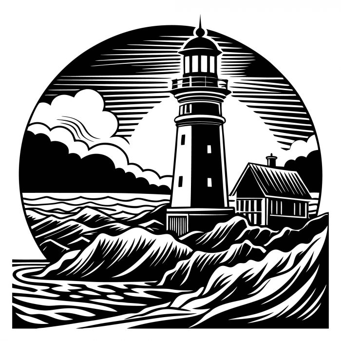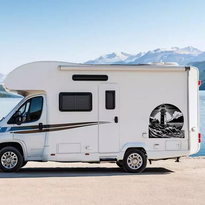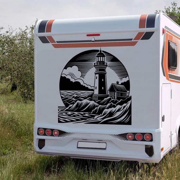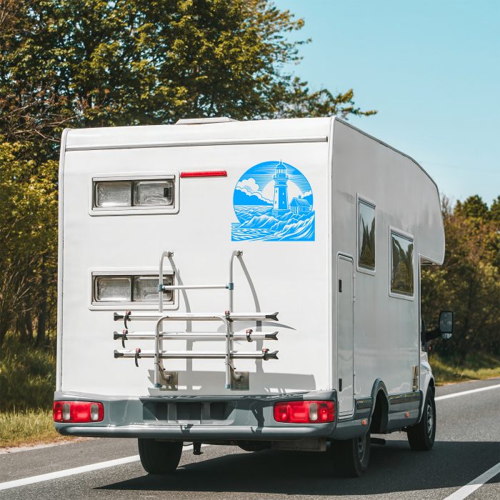 Leuchtturm Aufkleber mit Wellen – Maritimes Flair für deinen Wohnwagen