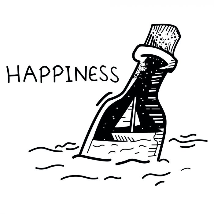 Flaschenpost Aufkleber „Happiness“ – Maritimes Glück für unterwegs