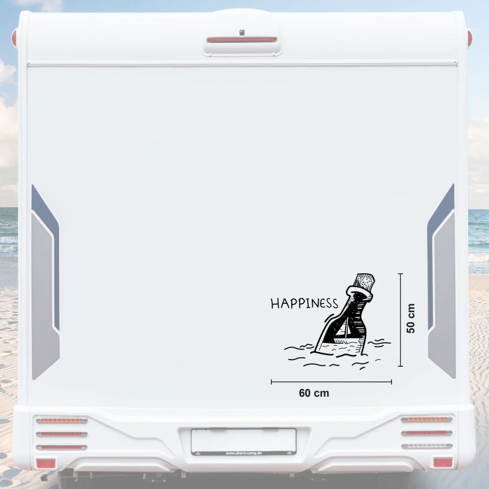 Wohnwagen Aufkleber Flaschenpost „Happiness“ bis Größe XXL